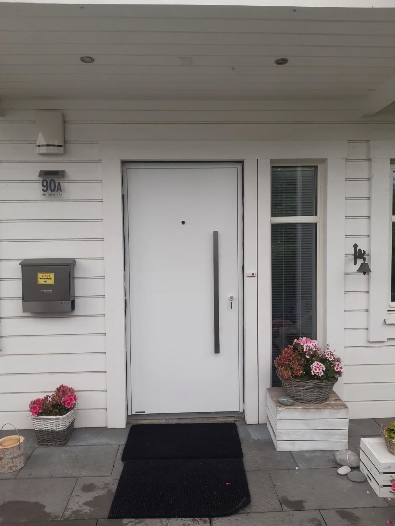 Weiße Alu-Haustür mit Stangengriff